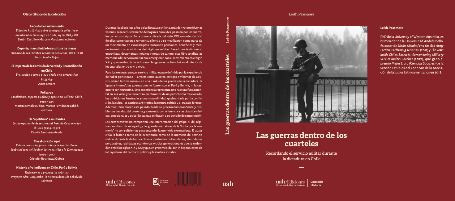 Los exconscriptos no comparten una interpretación del golpe, ni del régimen militar o de su legado, y las grandes narrativas de la “lucha por la memoria” no son suficientes para entender la memoria exconscripta. El autor sitúa la historia tanto de la experiencia como de la memoria del servicio militar durante la dictadura chilena dentro de continuidades, identidades perdurables, realidades económicas y ciclos generacionales que se extienden entre los siglos XIX y XXI y que, en gran medida, son independientes de la trayectoria del conflicto político y las luchas sociales.